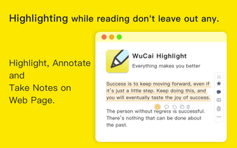 WuCai เป็นส่วนขยาย Firefox ที่ทรงพลังซึ่งออกแบบมาเพื่อเพิ่มประสิทธิภาพการท่องเว็บผ่านการเน้นข้อความ การทำหมายเหตุ และความสามารถในการจดบันทึกอย่างมีประสิทธิภาพ เครื่องมือนี้เป็นแบบสมัครสมาชิกที่อนุญาตให้ผู้ใช้เน้นหน้าเว็บใดก็ได้ โดยมีฟีเจอร์ต่างๆ เช่น สีเน้นข้อความหลายสี การเน้นภาพ และแถบเครื่องมือด้านข้างเพื่อการเข้าถึงที่ง่าย ผู้จัดการการเน้นช่วยในการจัดระเบียบบันทึก รองรับแท็กซ้อนกันไม่จำกัดและทำให้มั่นใจว่าข้อมูลสำคัญสามารถเรียกคืนได้ง่ายและมีโครงสร้างที่ดี